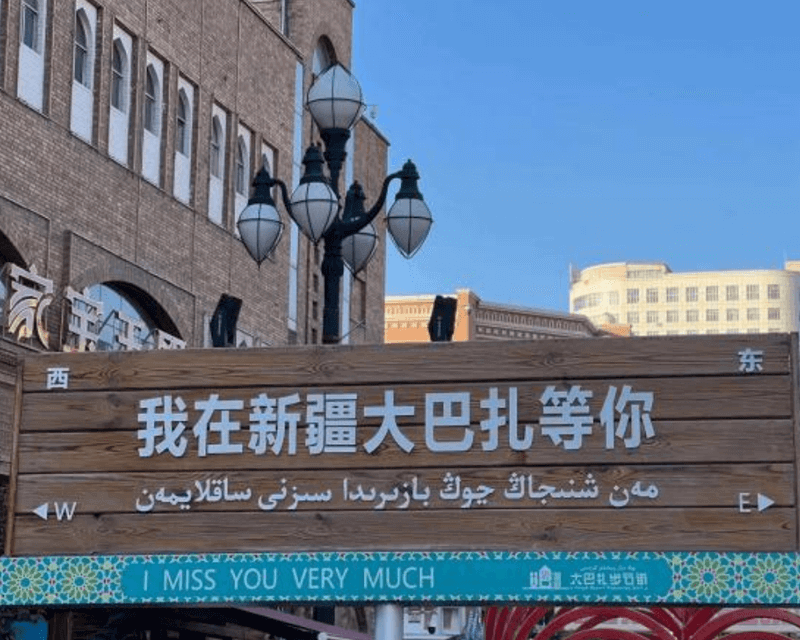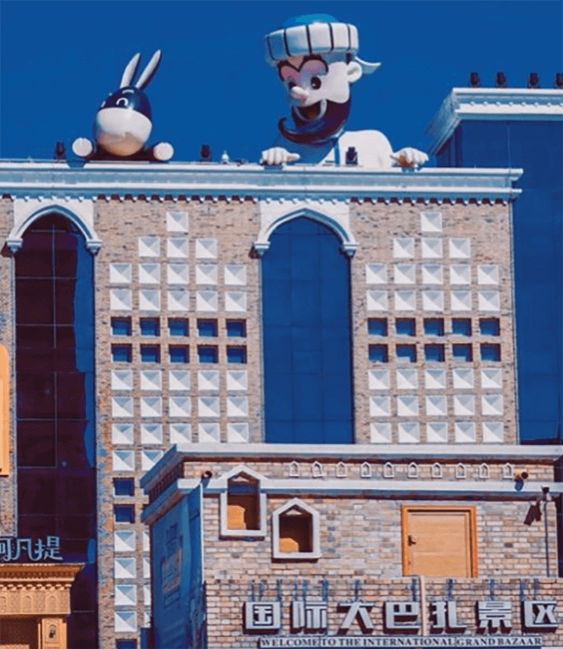 巴扎是維吾爾語,意為集市、農(nóng)貿(mào)市場,它遍布新疆城鄉(xiāng)。新疆國際大巴扎于2004年入選烏魯木齊市“十佳建筑”,具有濃郁的伊斯蘭建筑風格,在涵蓋了建筑的功能性和時代感的基礎上,重現(xiàn)了古絲綢之路的繁華,集中體現(xiàn)了濃郁西域民族特色和地域文化,是“新疆之窗”、“中亞之窗”和“世界之窗”。