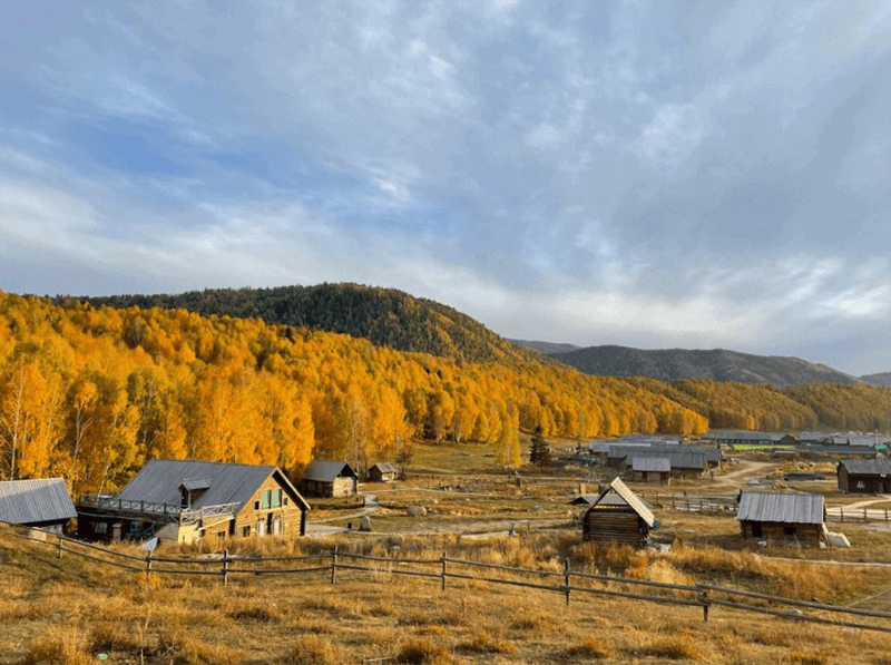十月初的禾木村秋色濃濃,裊裊炊煙冉冉升起,小橋流水貫穿其中,和身披金黃色的白樺林、胡楊樹,共同交織出一幅色彩斑斕的油畫世界,讓人心曠神怡、流連忘返。