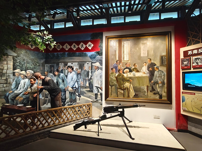 追尋一個(gè)個(gè)紅色印記,傾聽一個(gè)個(gè)紅色故事。黨員們沿著青石板路步入李巷深處,參觀了中國(guó)新四軍歷史研究館、抗日同志紀(jì)念館、新四軍領(lǐng)導(dǎo)人舊居等。同志們或駐足觀看,或交流感悟,一個(gè)個(gè)真實(shí)場(chǎng)景、一件件珍貴文物、一張張歷史照片,彷佛將大家?guī)Щ亓四嵌纹D苦卓絕的崢嶸歲月,也讓大家對(duì)黨組織帶領(lǐng)人民開展抗日斗爭(zhēng)的偉大歷程和光輝業(yè)績(jī)有了更加深入的了解。紅色李巷的“紅”,是革命斗爭(zhēng)的燎原星火,是先輩英烈的殷紅鮮血,是民族復(fù)興的火紅理想。