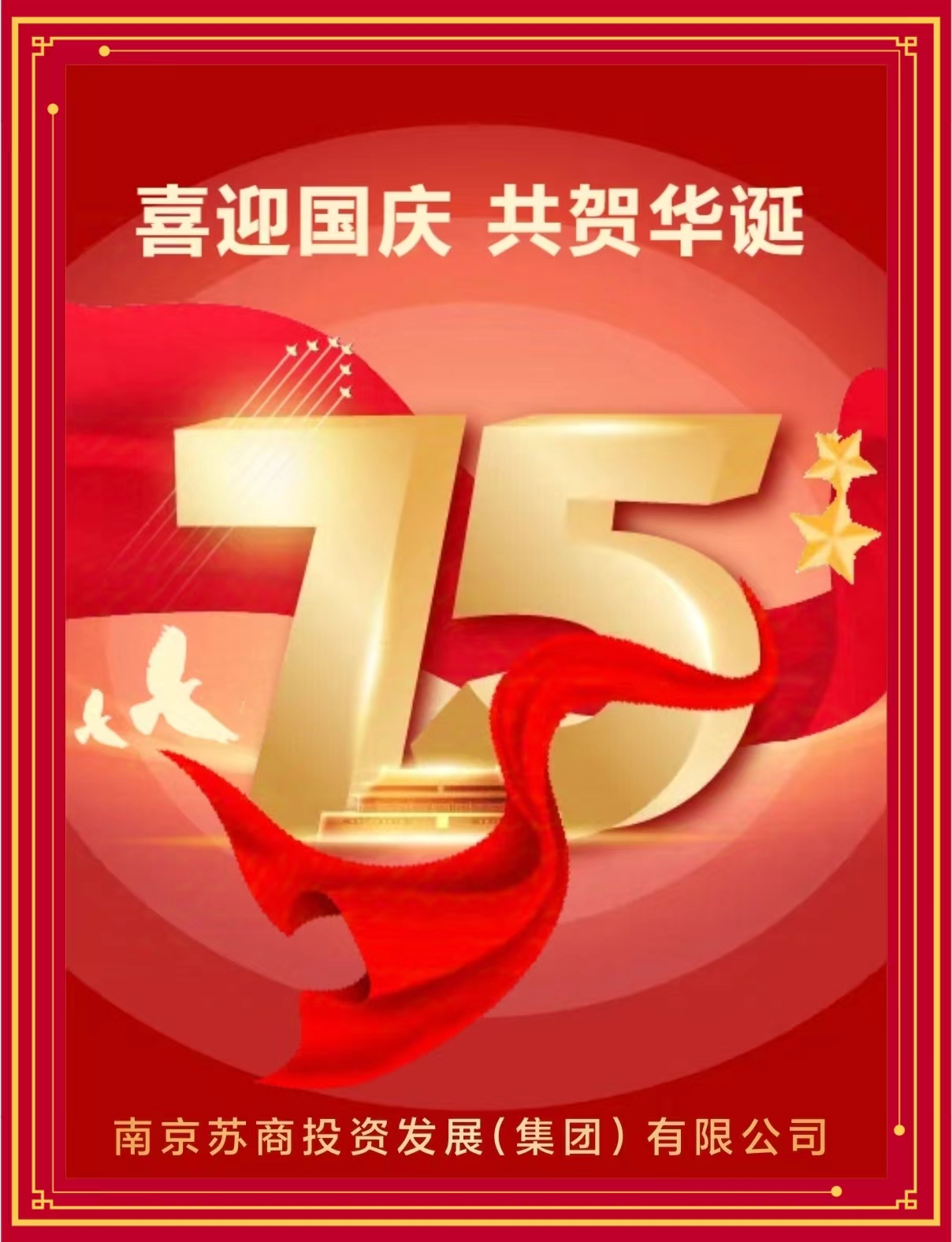 ? ? ? 金秋的暖陽灑滿大地,丹桂的芬芳彌漫四方,我們滿懷激動與敬仰,迎來了偉大祖國——中華人民共和國成立75周年的輝煌時刻。南京蘇商投資發(fā)展(集團)有限公司全體員工,向這片給予我們無限機遇與榮耀的土地,致以最崇高的敬意和最熱烈的祝賀!